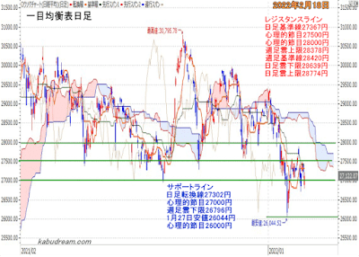 日経平均一目均衡表(日足)チャート2022年2月10日